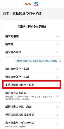 過去18カ月分の支払証明書を、My UQ mobile(Web)の「WEB de 請求書」からPDF形式でダウンロードできます。