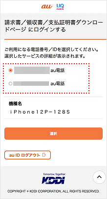 「My UQ mobile(Web)」へアクセスし、au IDでログインします。