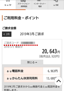 ご請求金額の左上に「ご請求コード」が表記されています。