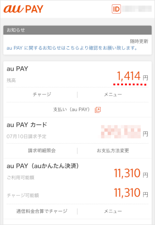 au PAY サイトにau IDでログインすることで、確認ができます。