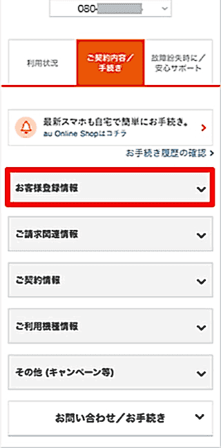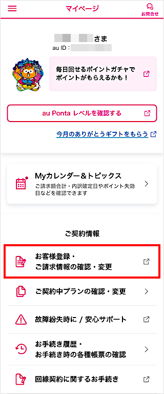 [お客様登録・ご請求情報の確認・変更]をタップします。