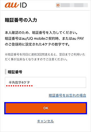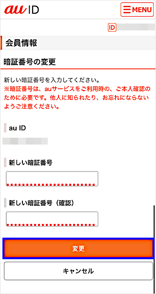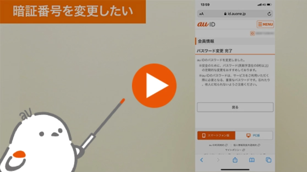 UQ mobileご契約時にお決めいただいた4桁の暗証番号は、「au ID会員情報サイト」で変更できます。