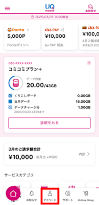 UQ mobileご契約時にお決めいただいた4桁の暗証番号は、My UQ mobileアプリの「マイページ」で変更できます。