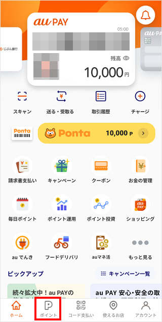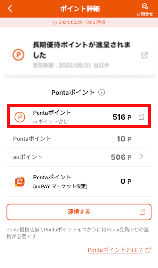 Webサイト(au Ponta ポータル)にログインすることでご確認いただけます。