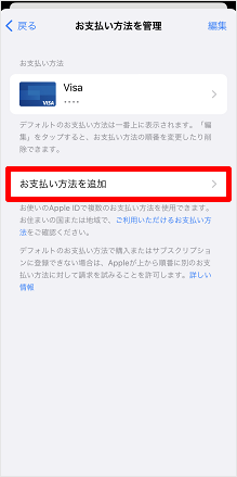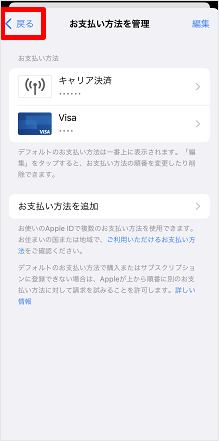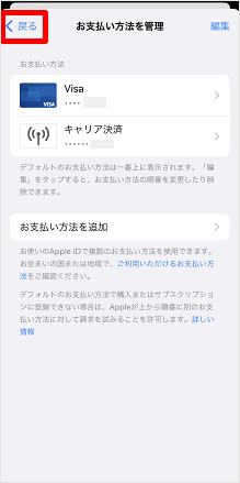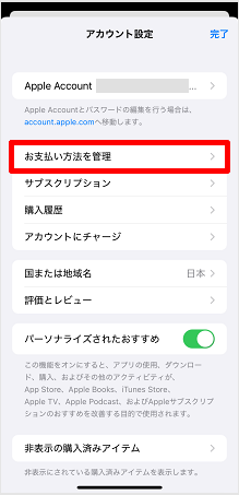 App Storeにサインインし、「お支払い方法を管理」で、Apple Accountの支払い方法を変更できます。