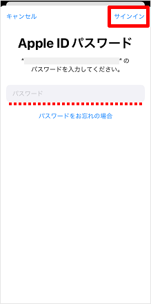 Apple Accountのパスワードを入力し、[サインイン]をタップします。