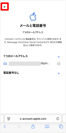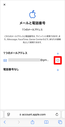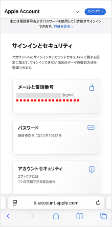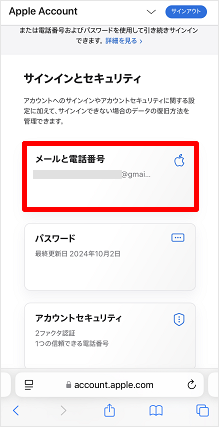 Apple Account 管理サイトへサインインし、[メールと電話番号]をタップします。