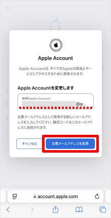 入力が完了したら、[主要メールアドレスを変更]をタップします。