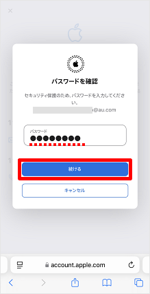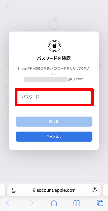 「パスワード」欄をタップし、Apple Accountのパスワードを入力します。