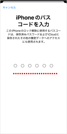 確認・認証の完了後、画面ロックに使用しているパスコードを入力します。