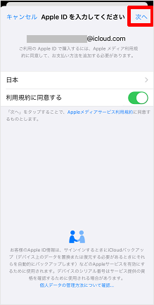 利用規約を確認して、[利用規約に同意する]のスイッチをタップします。