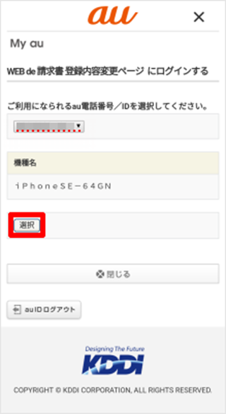 お手続きする電話番号を選択の上、[選択]をタップします。