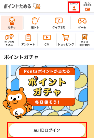 [ログイン]もしくは[au IDログイン]をタップし、au IDでログインします。