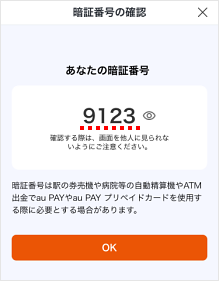 ※au PAY プリペイドカードの暗証番号は、au IDの暗証番号やau PAY カードの暗証番号とは異なります。