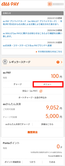 暗証番号を忘れてしまった場合は、au PAY サイトの「メニュー」から、au PAY プリペイドカードの暗証番号を確認することができます。