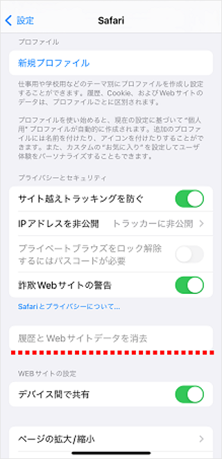ブラウザ(safariアプリ)のキャッシュ/Cookieの削除は設定アプリで削除ができます。