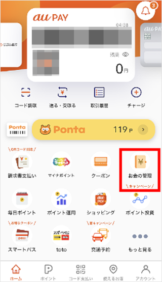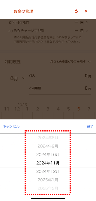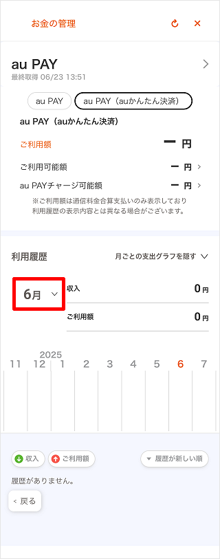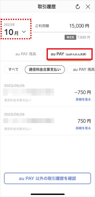 確認したい月を選択し、[au PAY(auかんたん決済)]をタップします。