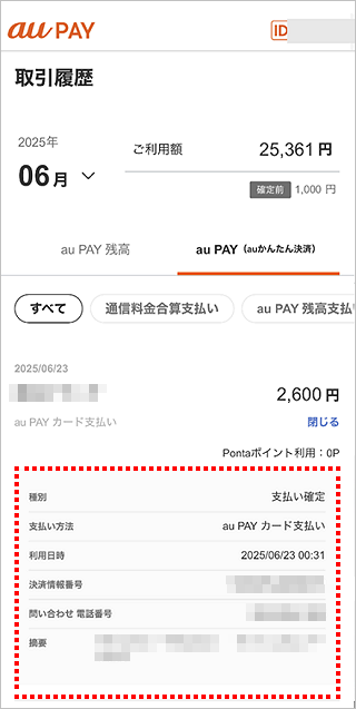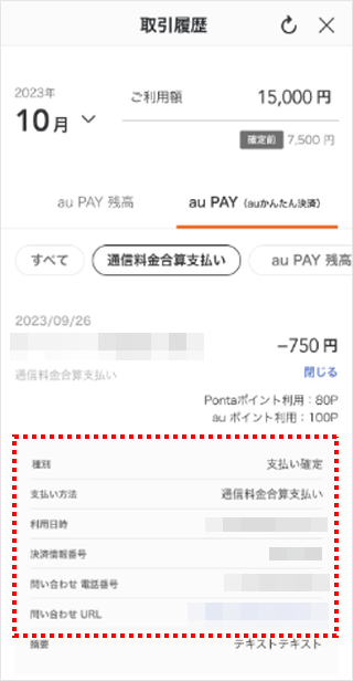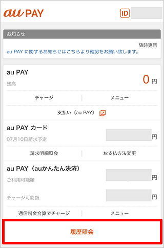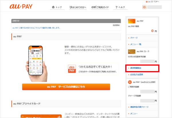 au PAY(auかんたん決済)の利用明細は、au PAY サイトの履歴照会画面で確認できます。