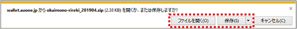 確認画面が表示されるため[ファイルを開く]または[保存]を選択します。