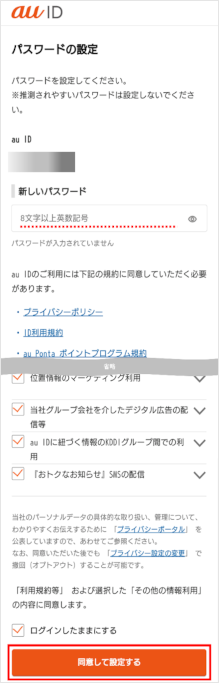 My UQ mobile(アプリ)でau IDやパスワードの新規登録ができます。