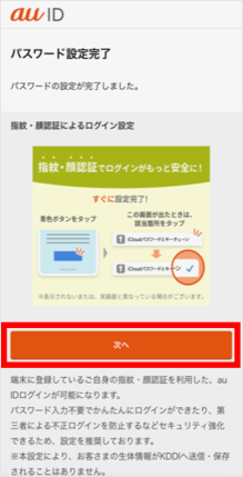 ※UQ mobileのお客さまは、この次にメールアドレスの登録画面が表示されますので、画面に従い登録を行います。