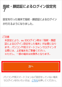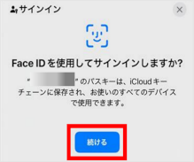 ※画面が進まない場合はFace IDなどが未設定の可能性があります。生体認証(指紋・顔)または番号認証/パターン認証などの画面ロック登録をしていただくことで次の画面へ進みます。