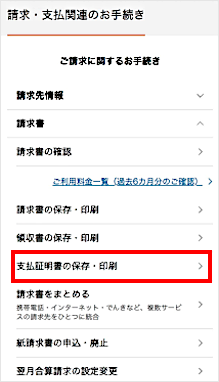 [請求書/領収書/支払証明書の保存・印刷]をタップします。