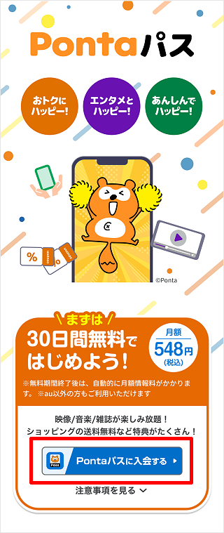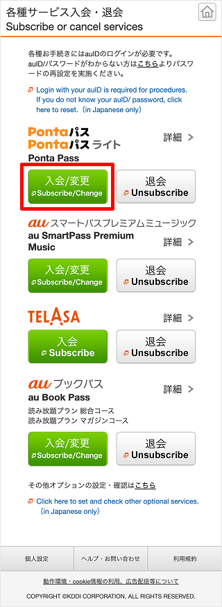 「Pontaパス/Pontaパス ライト」の[入会/変更]をタップします。