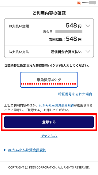 ご契約時にお決めいただいた「4桁の暗証番号」を入力し、[登録する]をタップします。