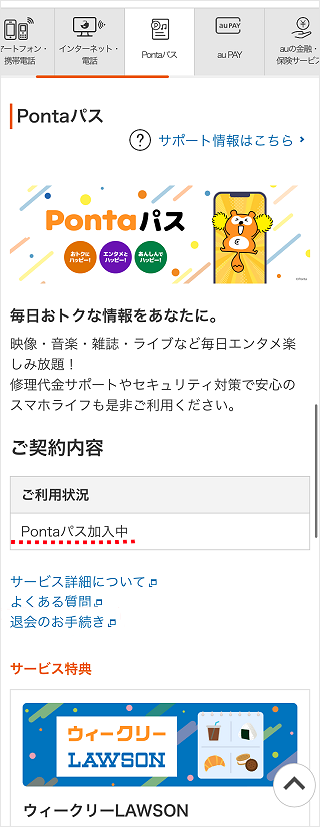 「Pontaパス/Pontaパス ライト」の加入状況は、My UQ mobile(Web)でご確認いただけます。