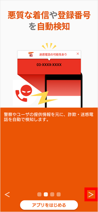 [迷惑メッセージ・電話ブロックアプリ]を起動します。