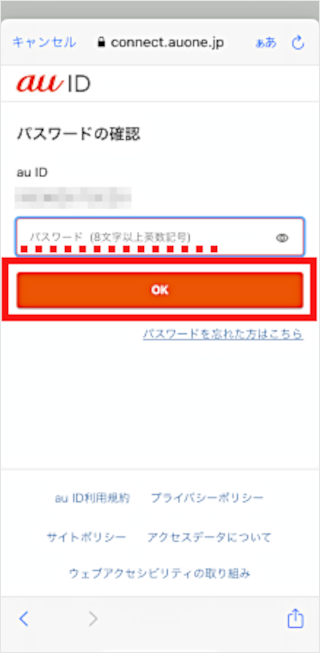 au IDのパスワードを入力し、[OK]をタップします。