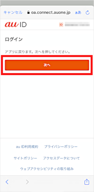[au IDでログインする]をタップします。