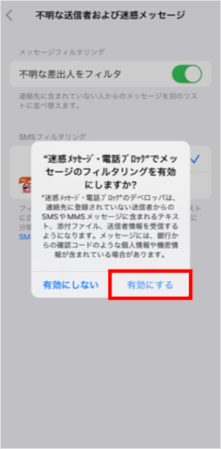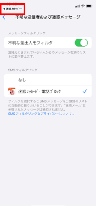 [迷惑メッセージ対策設定が有効になっていません]をタップします。