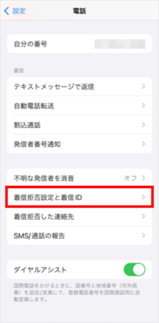 [着信拒否設定と着信ID]をタップします。