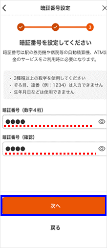 カードの暗証番号を設定して[次へ]をタップします。