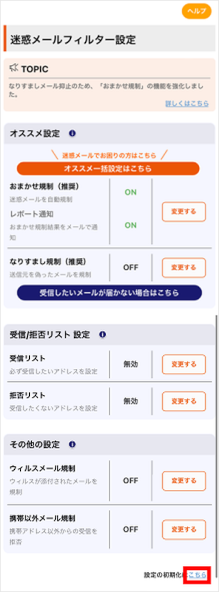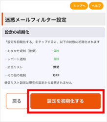 はい、「迷惑メールフィルター」の設定ページで初期化できます。