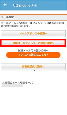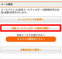 [迷惑メールフィルターの設定/確認へ]をタップします。