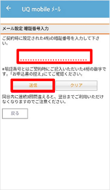 ご契約時に設定した暗証番号を入力して、[送信]をタップします。
