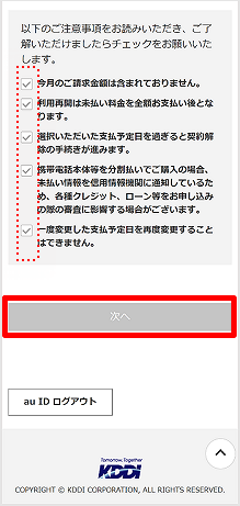注意事項にすべてチェックマークを入れ、[次へ]をタップします。