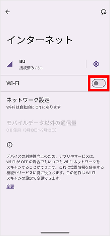 [Wi-Fi]のスイッチをタップしてオンにします。
