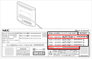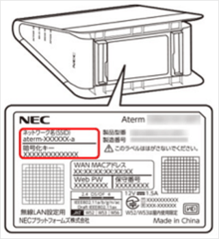 HGWまたは無線LAN機器本体の側面や底面のラベルに記載されています。