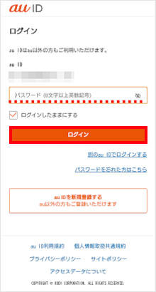 ※次回以降は、「メールアドレス型のau ID」と「以前と同じパスワード」でログインしてください。