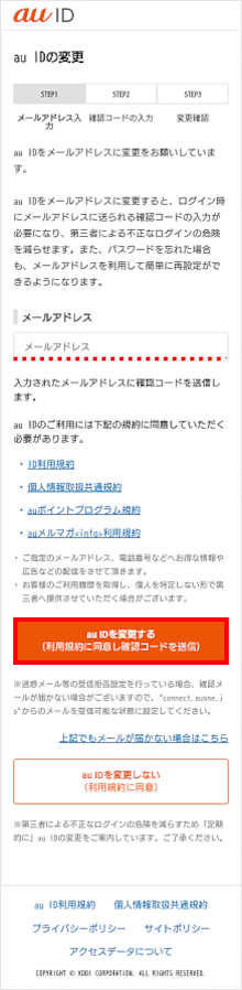 その際、au IDをメールアドレス型に変更する手続きに進みます。