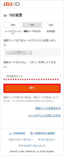 [au IDを変更して次へ]をタップします。