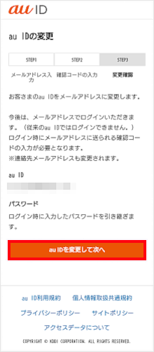 以上で、au IDをメールアドレス型に変更する操作は完了です。