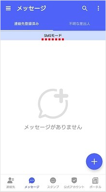 +メッセージ(プラスメッセージ)アプリを「SMSモード」へ変更いただくことで、SMSのみ送受信できるように変更いただけます。