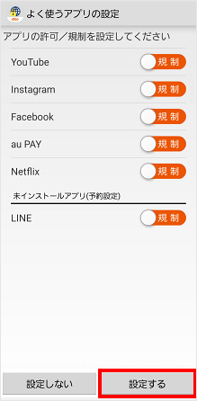 よくつかうアプリの[許可]または[規制]のスイッチをタップします。