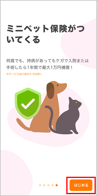 画面を右から左にスライドして進み、[はじめる]をタップします。