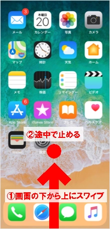 画面の下から上にスワイプ(スライド)して、途中で指を止めて離します。